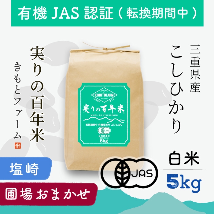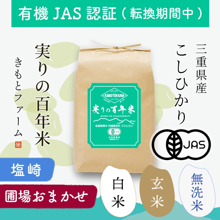 ※お届けする圃場はご指定いただけませんが、すべて「有機JAS認証(転換期間中)」を取得した圃場です。 三重県いなべ市の中山間地域にあるKIMOTOファームでは、2024年より農薬や化学肥料を使わない栽培に本格的に取り組み始めました。 その取り組みが評価され、2025年には「有機JAS認証(転換期間中)」を正式に取得しました。 このお米は、認証を取得した圃場で育てたコシヒカリ「実りの百年米」です。 養老山地の清らかな水と、昼夜の気温差が大きい土地で、稲の生命力を引き出すように手間と時間をかけて育てています。 日中につくられた栄養分がしっかりと蓄積され、米本来のうまみと甘みが引き立ちます。 炊きたてはもちろん、冷めてもふっくらもちもちの食感と自然な甘さが持続し、おにぎりやお弁当にもおすすめです。 「安心・安全なお米を選びたい」「自然なものを家族に食べさせたい」という方に、自信を持ってお届けできるお米です。
